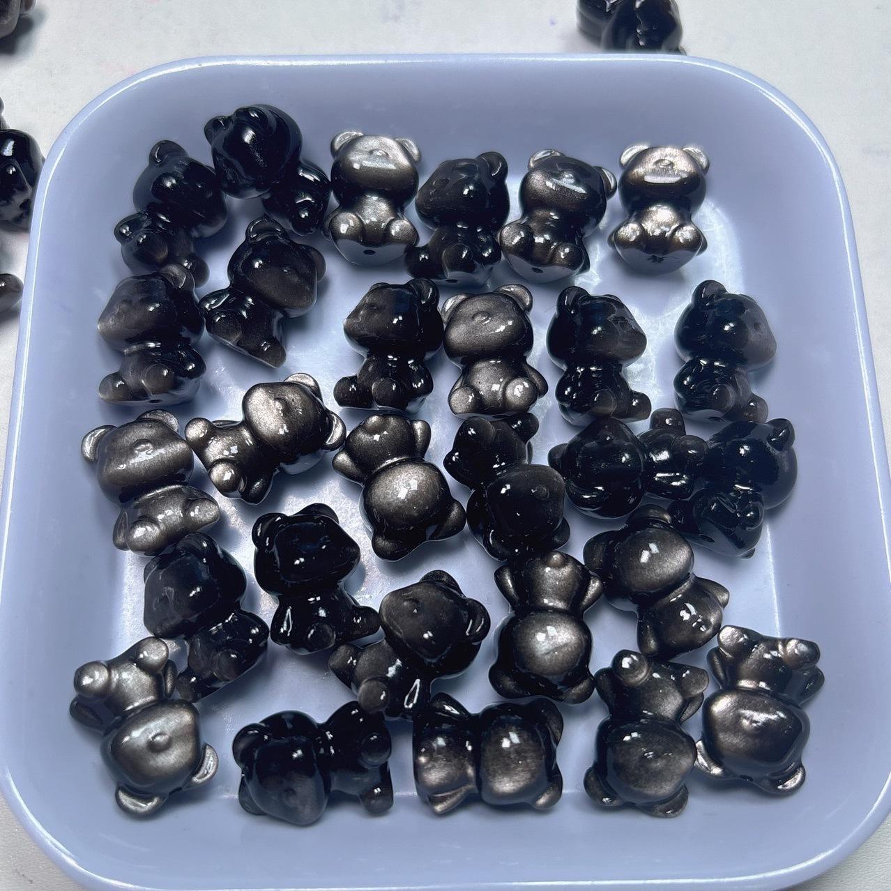 Be the first to review “10-piece cute bear shape natural silver obsidian bead”
