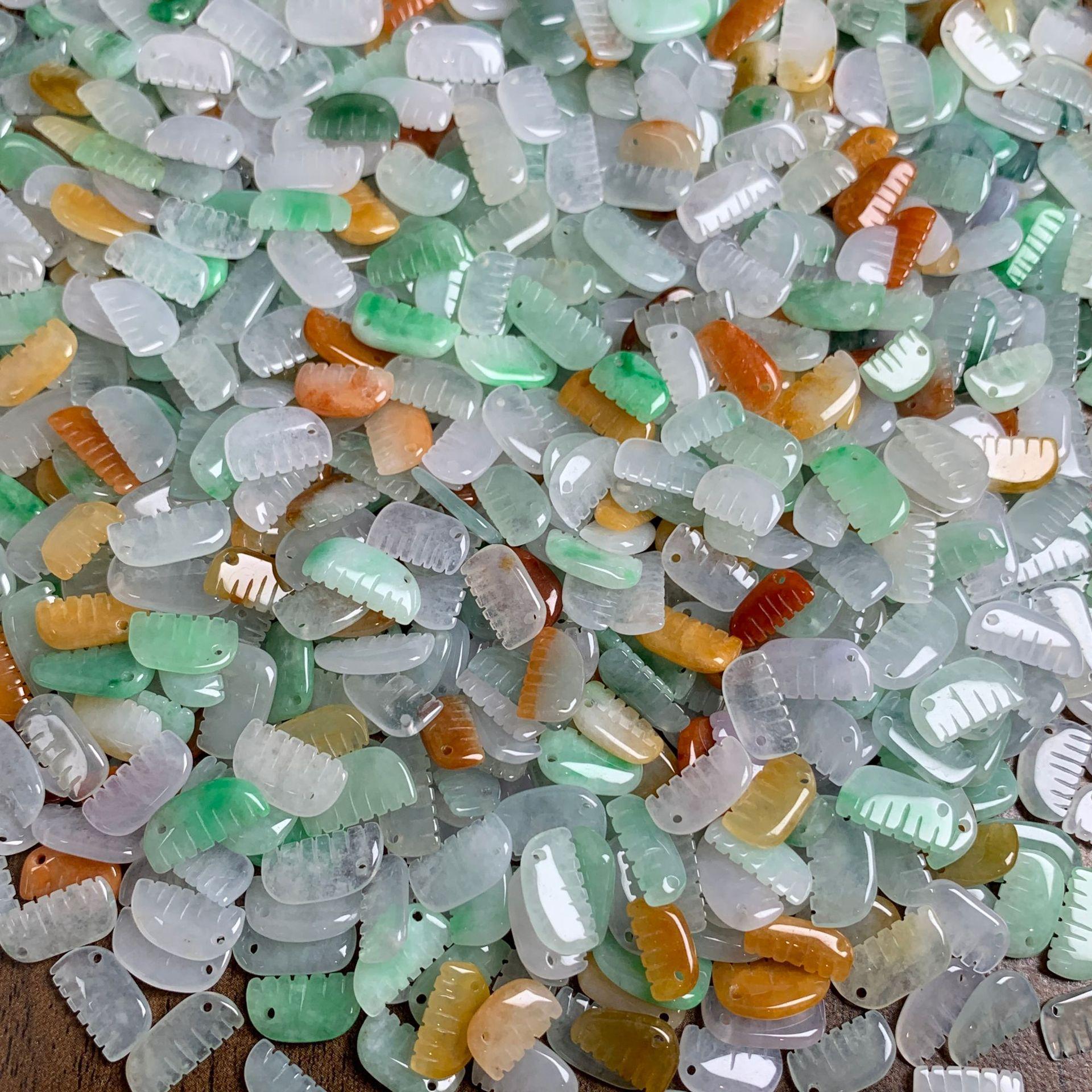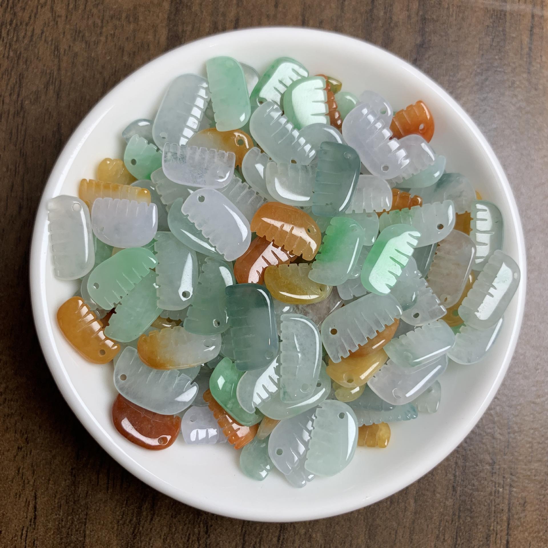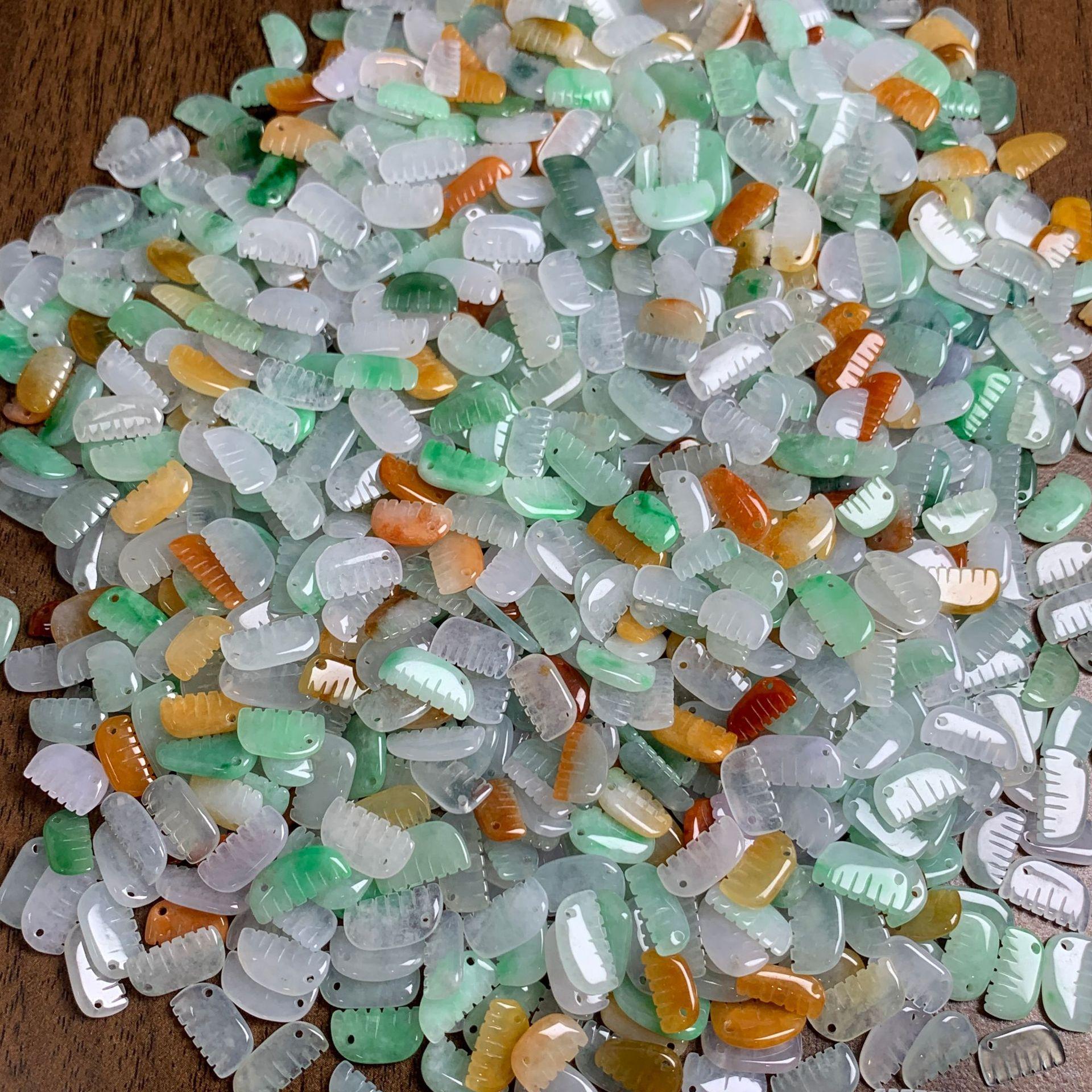 5 pcs small comb shape genuine natural colorful icy jadeite bead