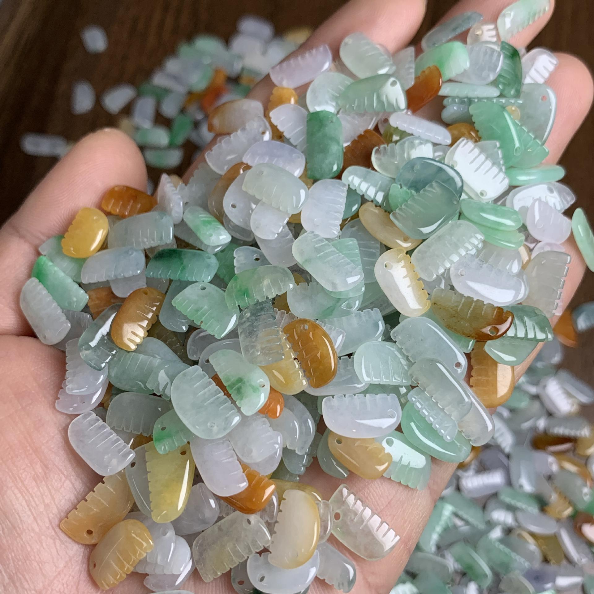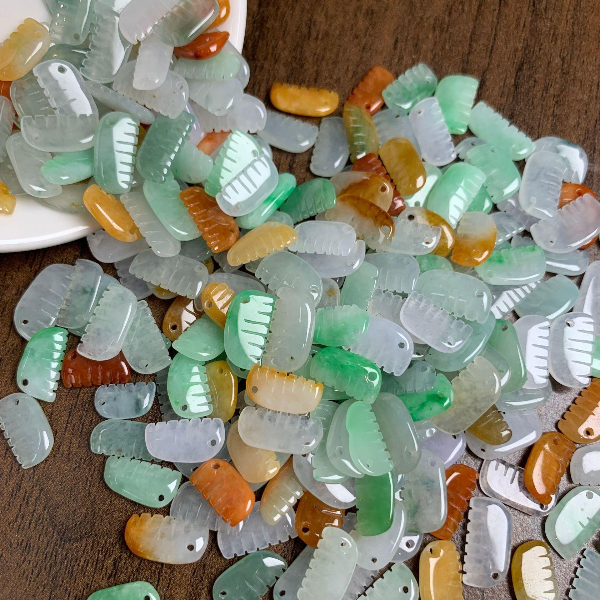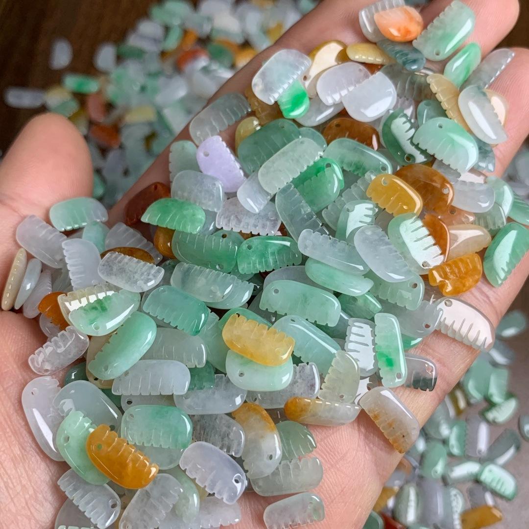 5 pcs small comb shape genuine natural colorful icy jadeite bead