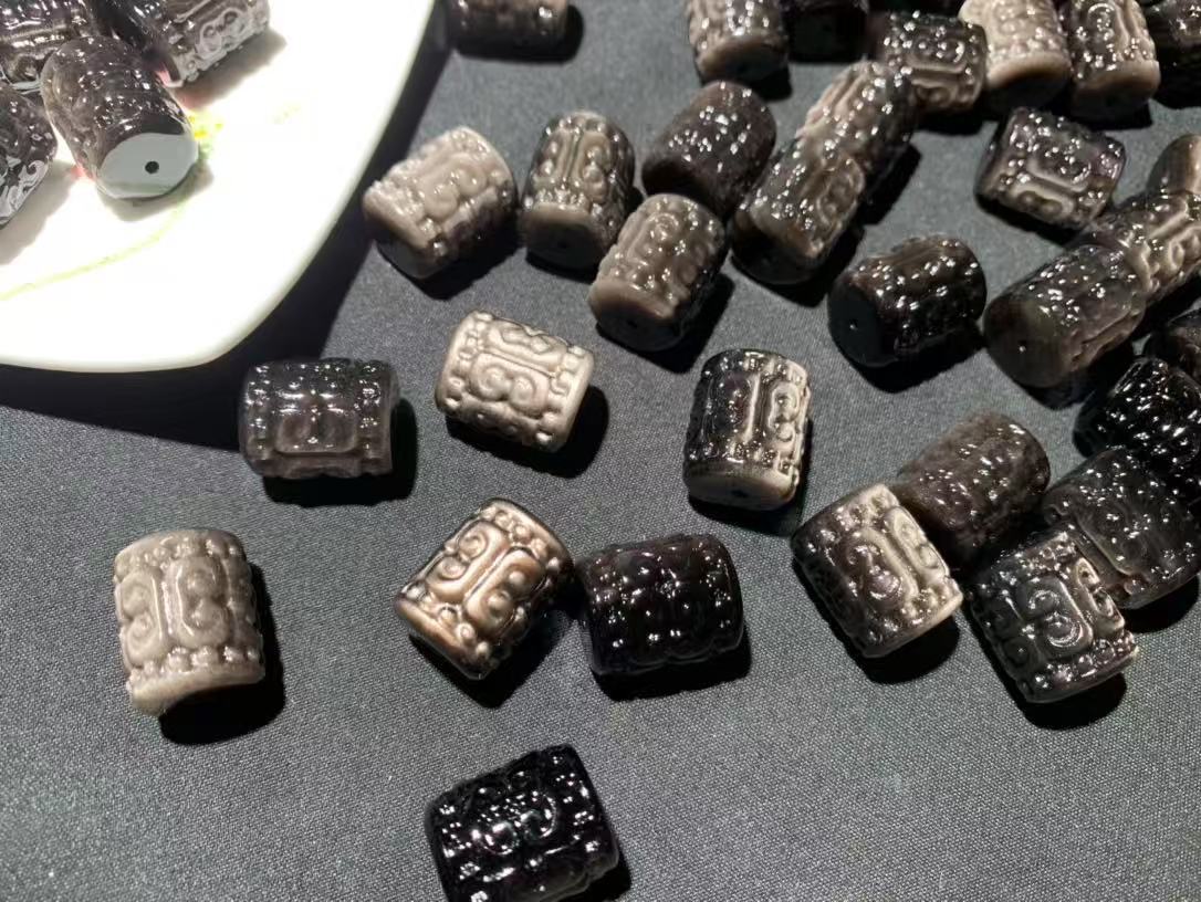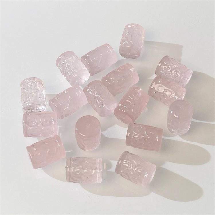 Material: natural clear quartz, rose quartz, amethyst, light yellow citrine, obsidian, non-dyed, no treatment other than engraving and polishing.