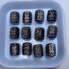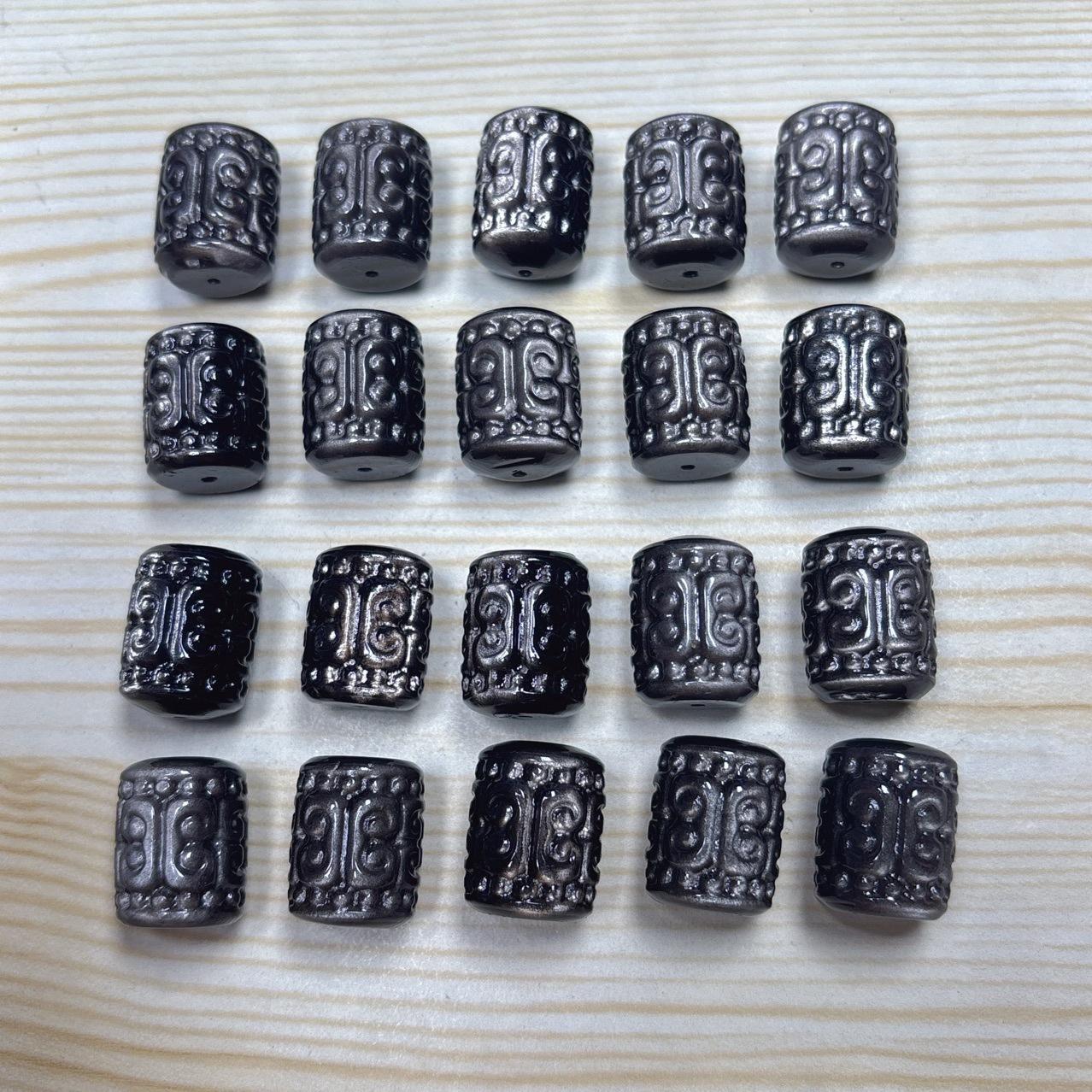 Material: genuine natural Silver Sheen Obsidian, non-dyed, no treatment other than engraving and polishing.