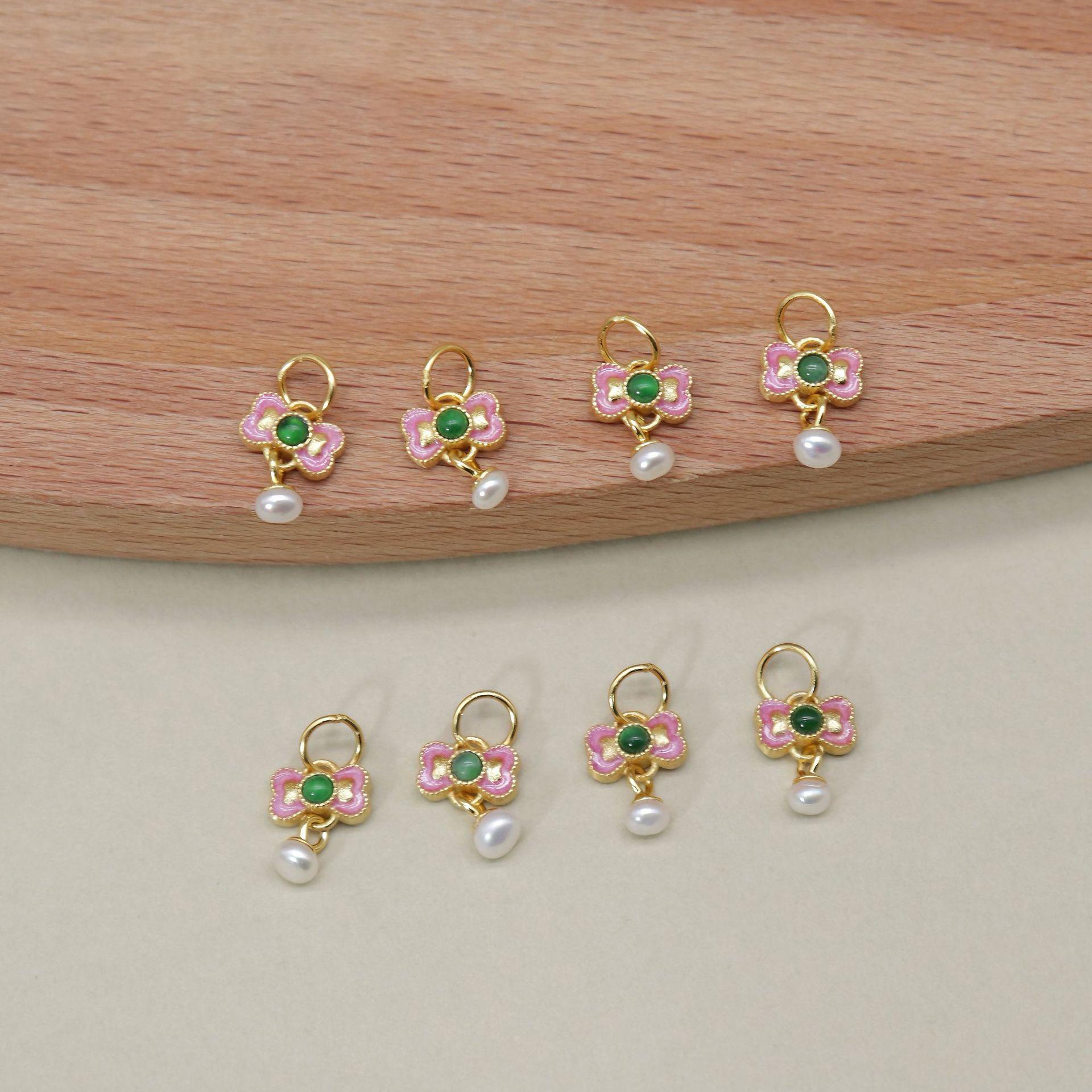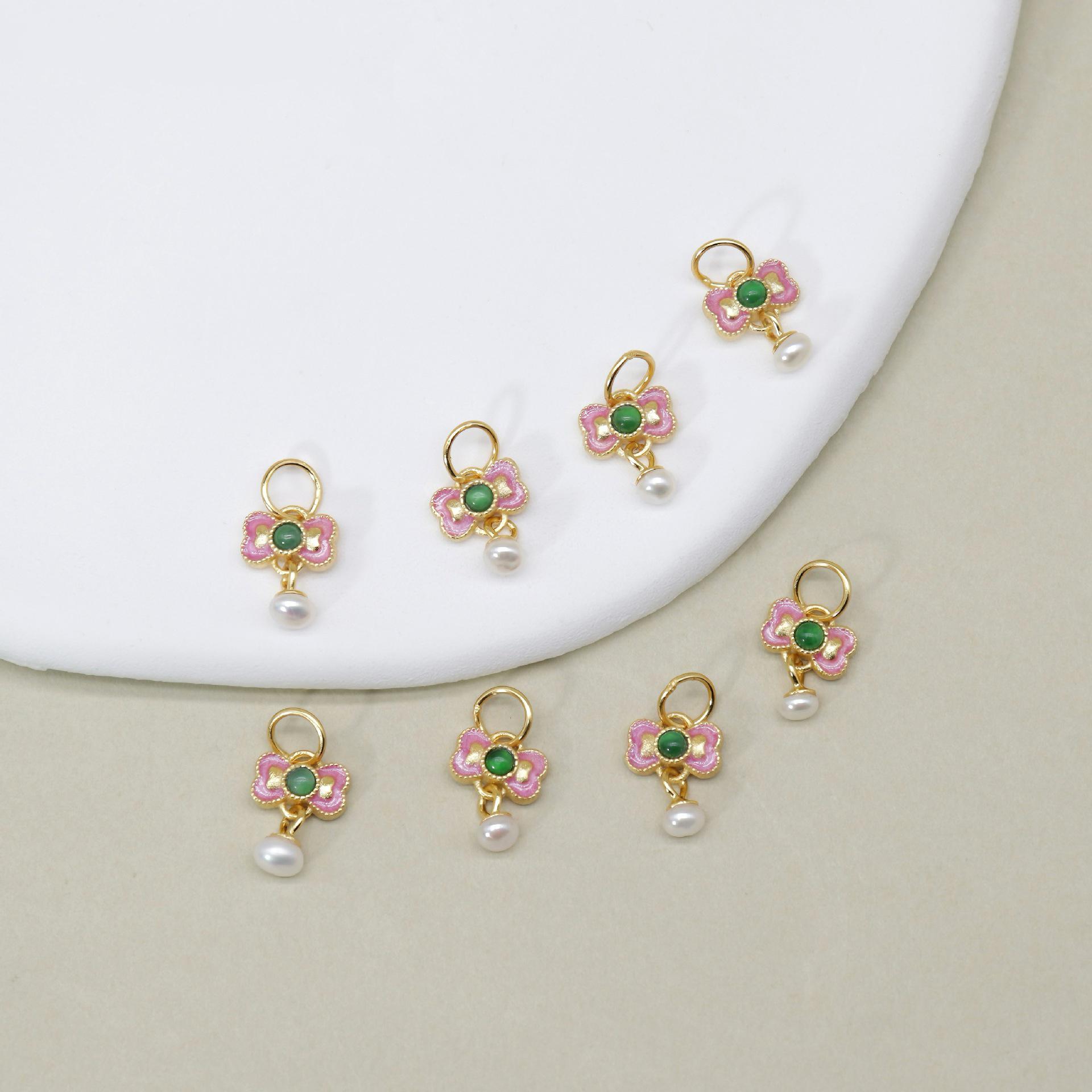 bow-knot charm, flower charm, jadeite charm, green charm, sterling silver charm, gild bead, golden charm, 2pcs / 5 pcs