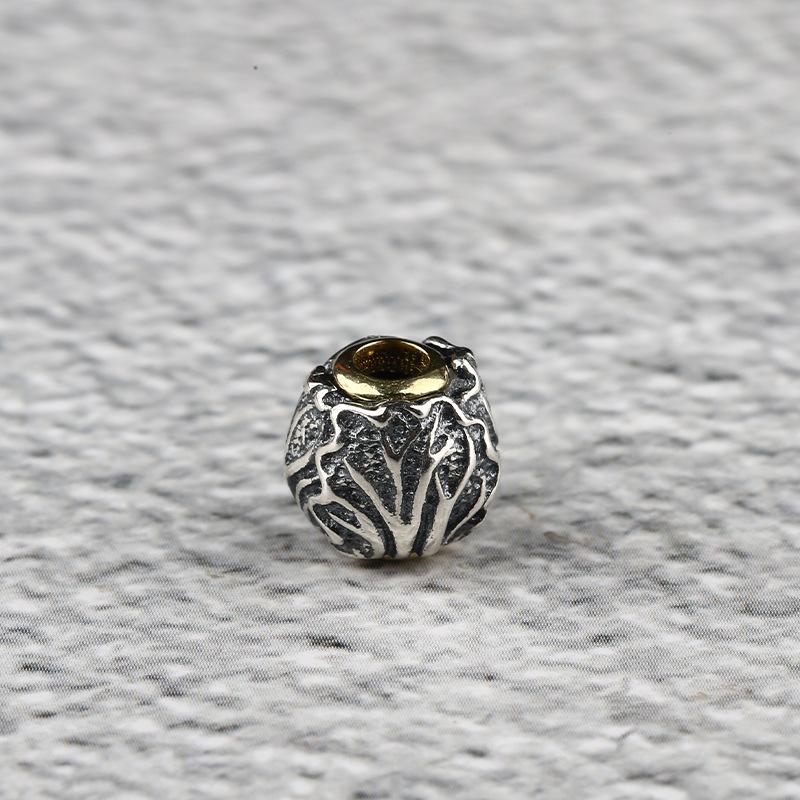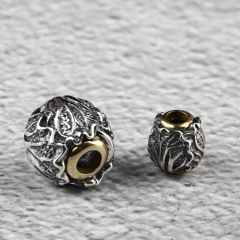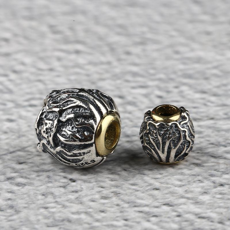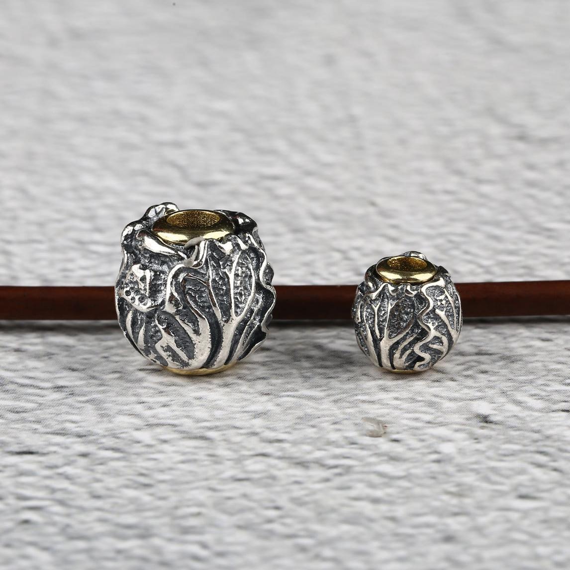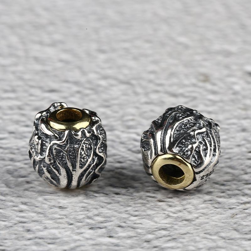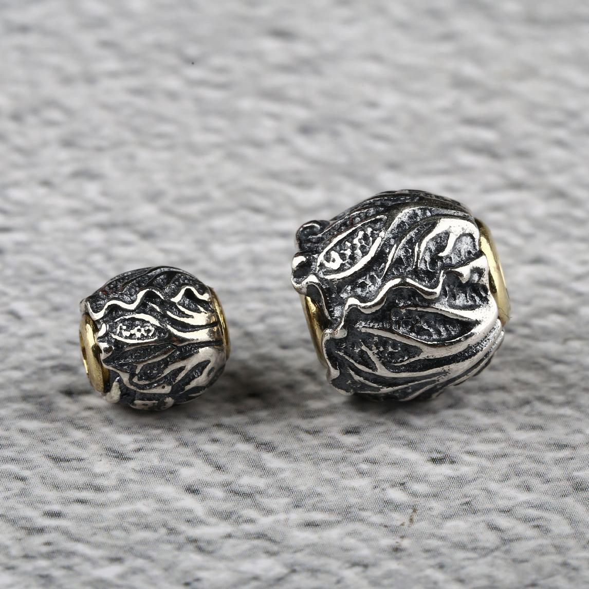 cabbage pattern round shape oxidized s925 sterling silver bead, spacer bead