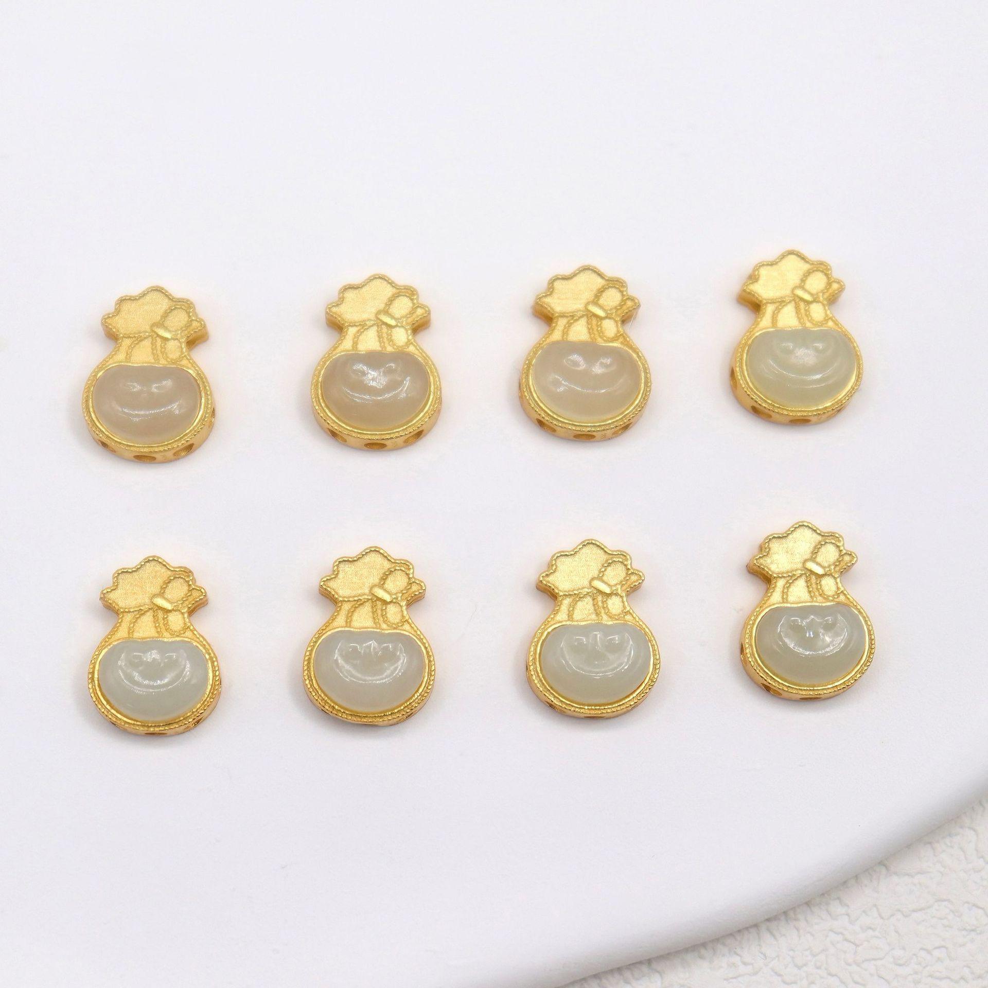ruyi flower bead, bezel bead, nephrite bead, sterling silver bead, gild bead, golden bead, 2pcs / 5 pcs