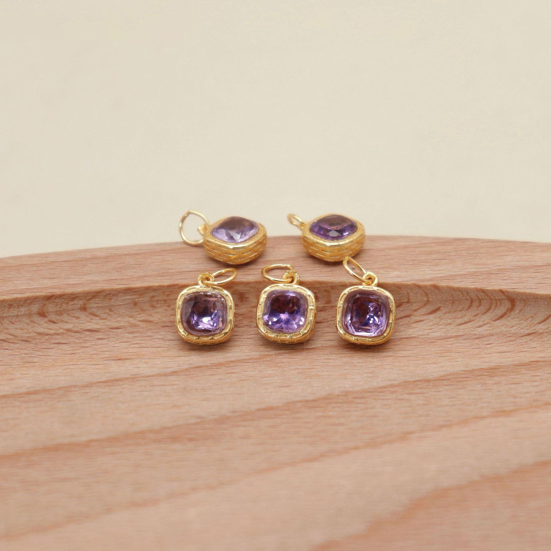 Material: gild s925 sterling silver, genuine natural amethyst, undyed, no treatment other than engraving and polishing
